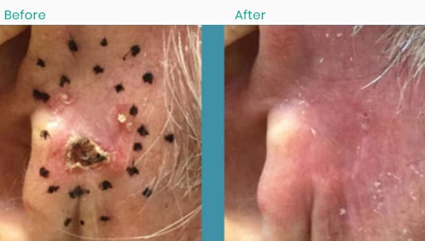 This makes it ideal for cosmetically sensitive areas such as the face, nose, ears, lips, scalp, and hands. - No Reconstructive Surgery