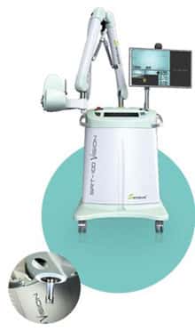 - The device’s treatment arm is positioned over the site and delivers targeted energy to treat the cancer without damaging healthy tissue.